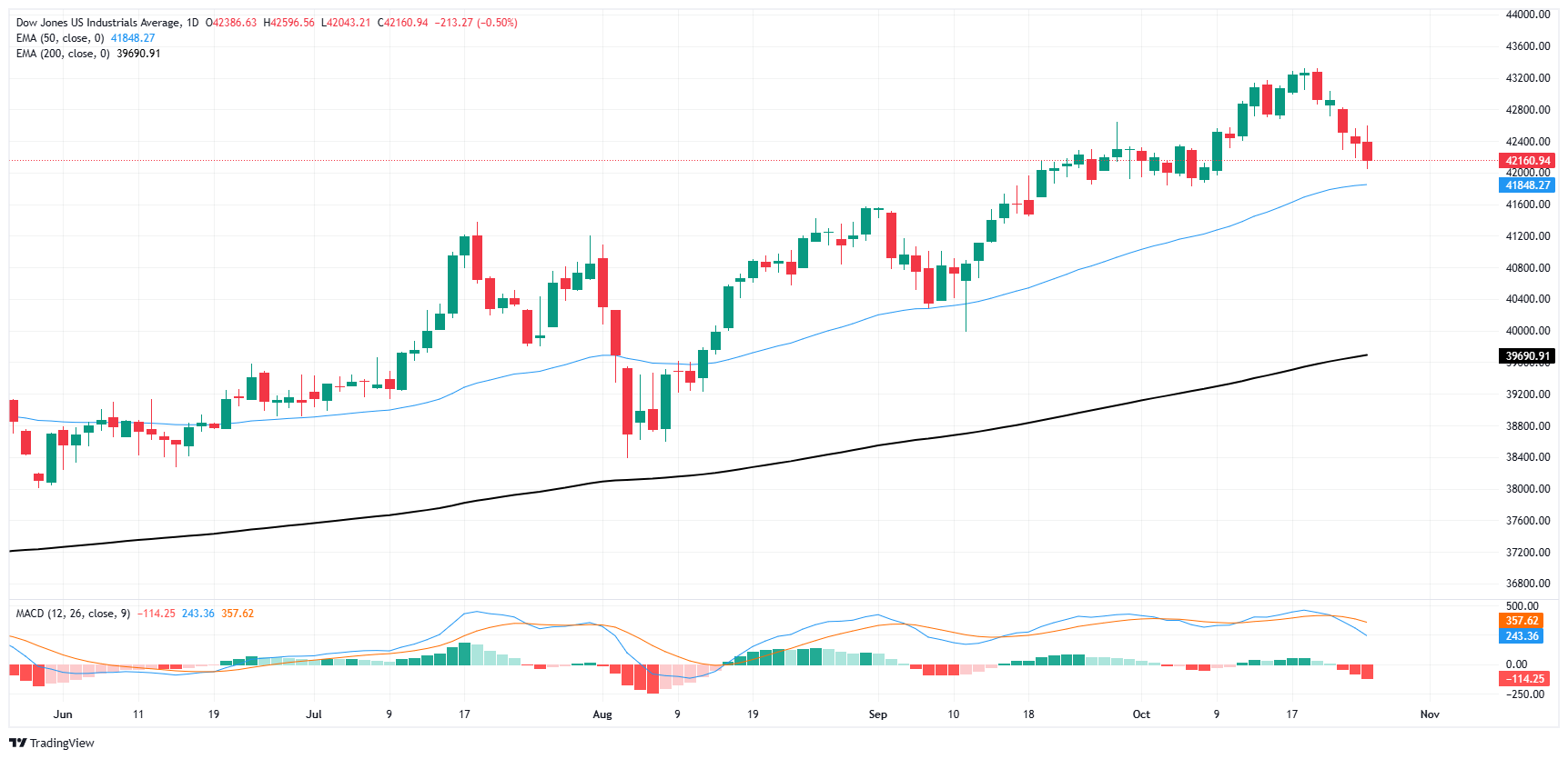 The Dow Jones spent most of the trading week grinding lower toward the 42,000 handle as the major stock index takes a break from 2024’s overall stellar performance. The equity board has snapped a six-week win streak, but is still firmly planted in bull country as markets take a breather and pull back from 43,000.