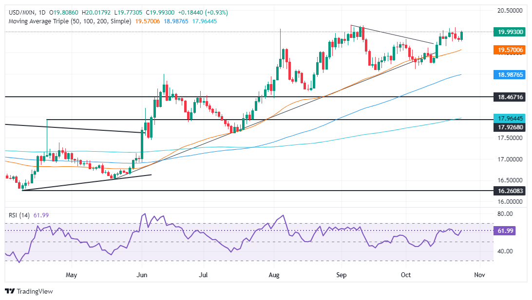 USD/MXN technical outlook: Mexican Peso tumbles as USD/MXN buyers eye 20.00