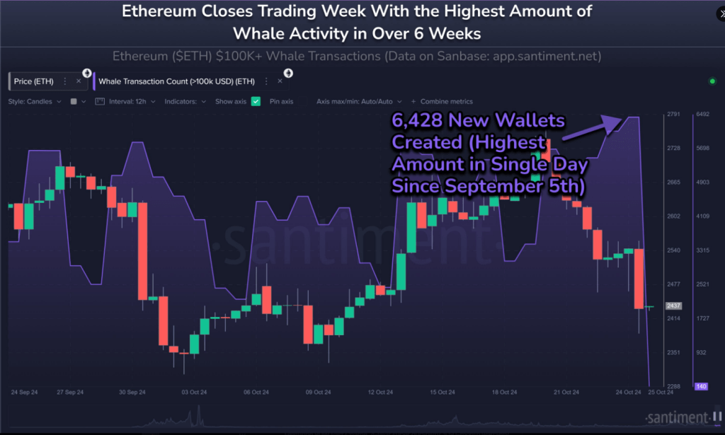 Blockchain data analysis firm Santiment identified a spike in whale activity on the Ethereum network and recommended a potential purchasing spree.
