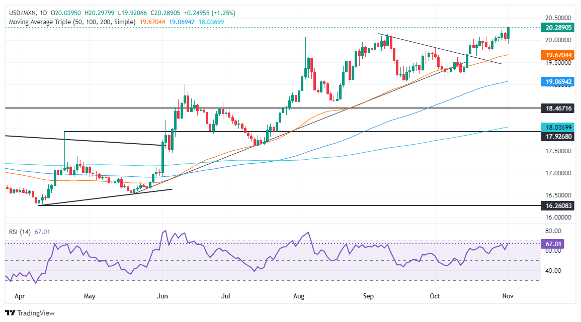 USD/MXN technical outlook: Mexican Peso drops as USD/MXN eyes 20.50