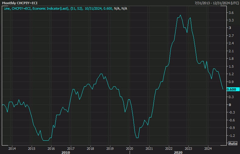 Some of the strongest evidence this week came from Switzerland, where year-over-year inflation fell to +0.60%. Back in September, the SNB slashed its inflation forecast for 2025 to 0.6% from 1.1% as it cut rates. This year’s inflation was also trimmed to 1.2% from 1.3%.