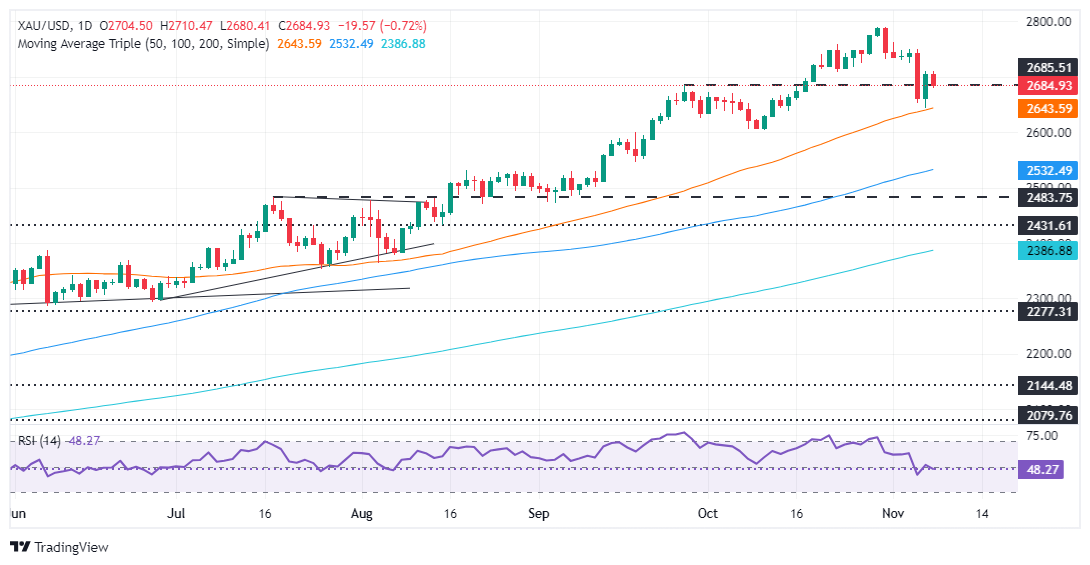 Gold prices had fallen on Friday as the Greenback stages a recovery despite falling US Treasury yields. Traders continued to digest Donald Trump’s victory in the US election, and they reduced their exposure on the so-called “Trump trade” due to uncertainty over tariffs. The XAU/USD trades at $2,688, down over 0.67%.