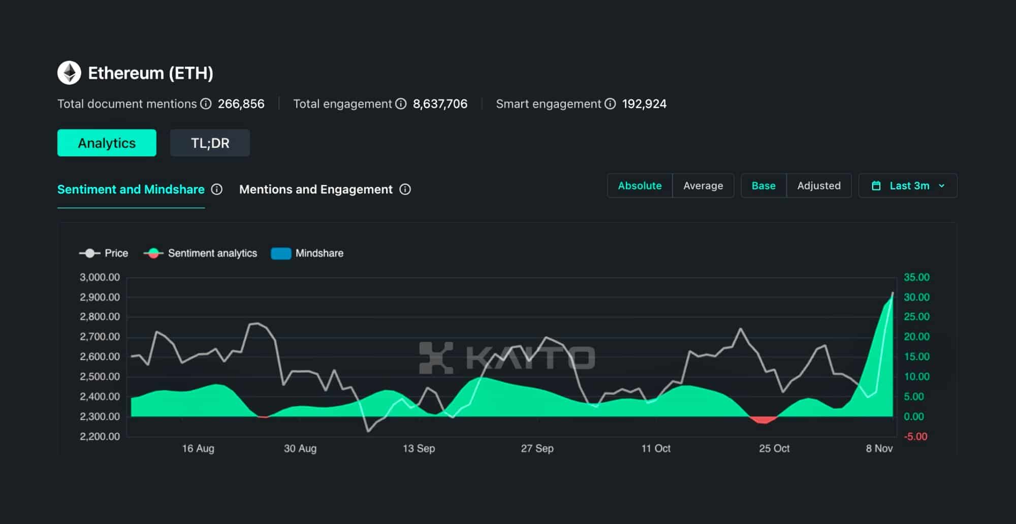 In fact, Kaito AI also revealed a sharp uptick in ETH sentiment recently, signaling a strong recovery in its perception and confidence.