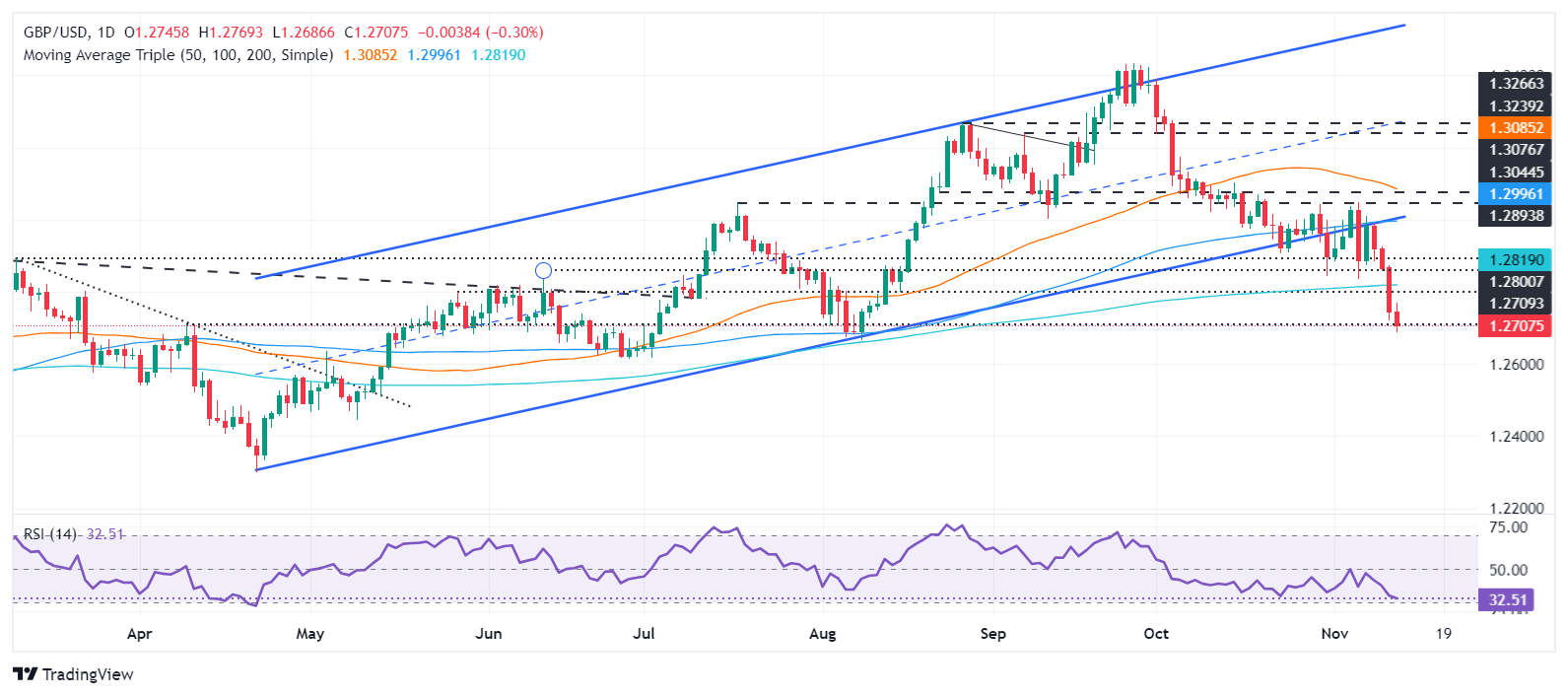 Oscillators such as the Relative Strength Index (RSI) hints that sellers are in charge. Therefore, further GBP/USD downside is seen.