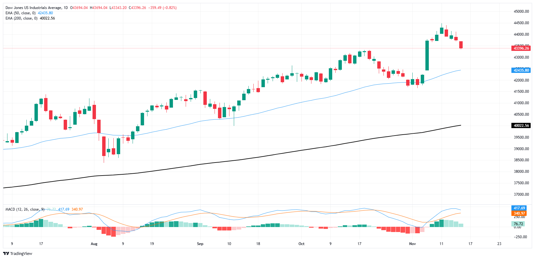The Dow Jones Industrial Average (DJIA) trimmed it’s recent bull run, declining over 350 points at its lowest and giving back roughly 0.85% as investors grapple with an increasingly uncertain future. US Retail Sales beat expectations but still eased back from previous figures, and Federal Reserve (Fed) Chair Jerome Powell splashed cold water on rate-cut-hungry investors this week when he reaffirmed that the Fed wasn’t “in a hurry” to cut interest rates further.