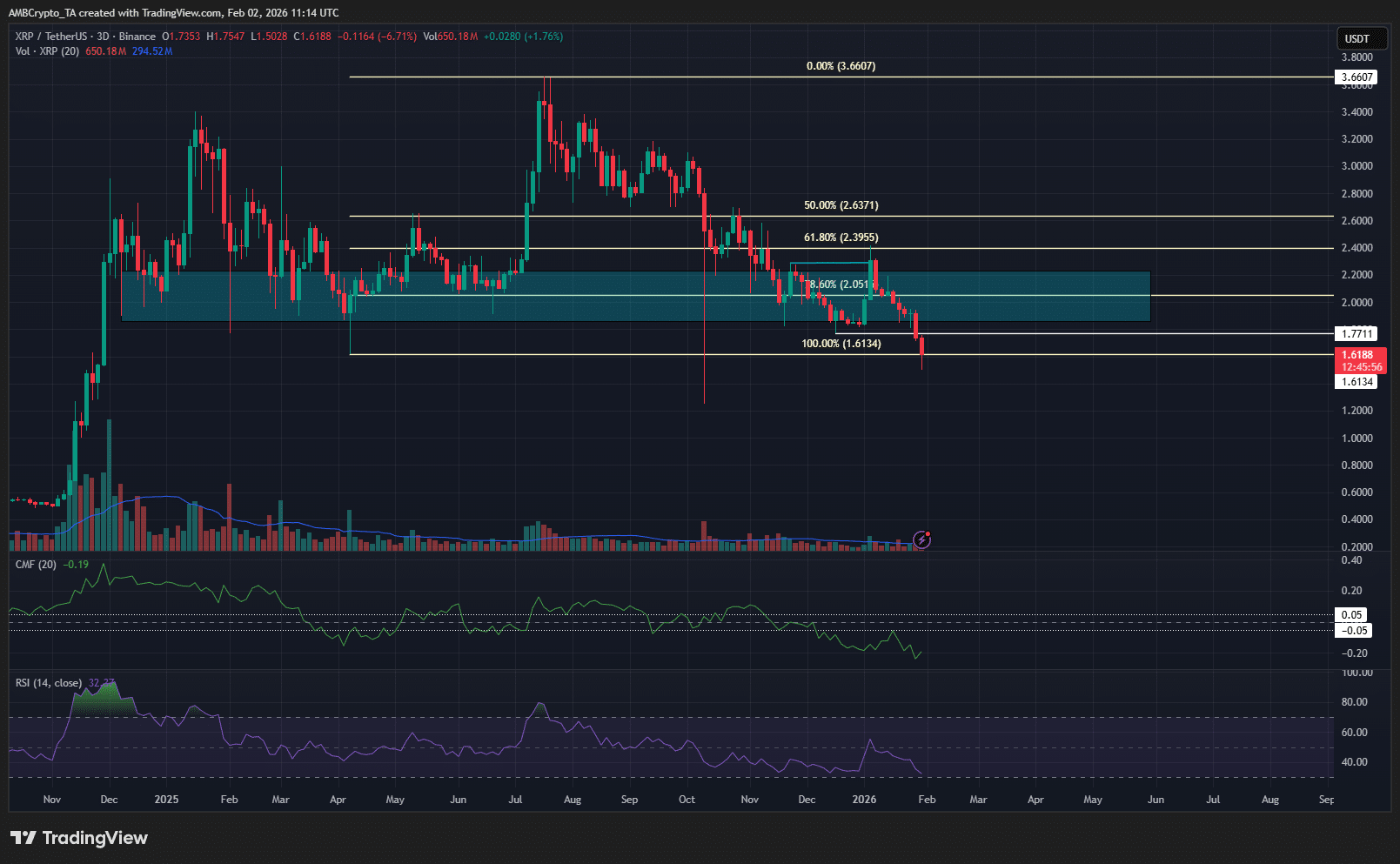 At the time of writing, the low from April 2025 at $1.61 was also under threat.