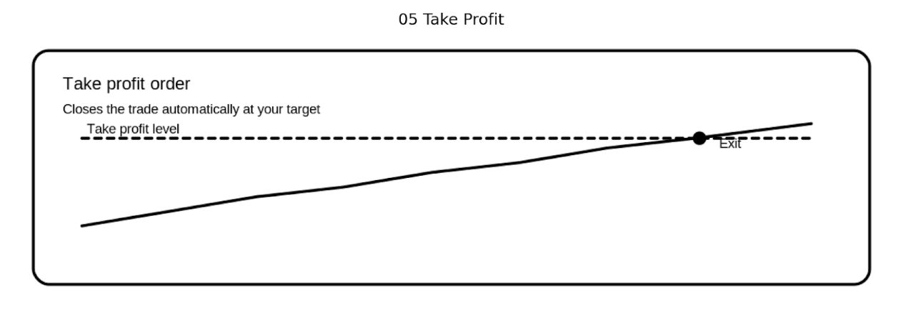 A take profit order (often called a TP or limit take-profit) closes your position once price hits your target. It says: “exit where the plan said, not where my emotions scream”.
