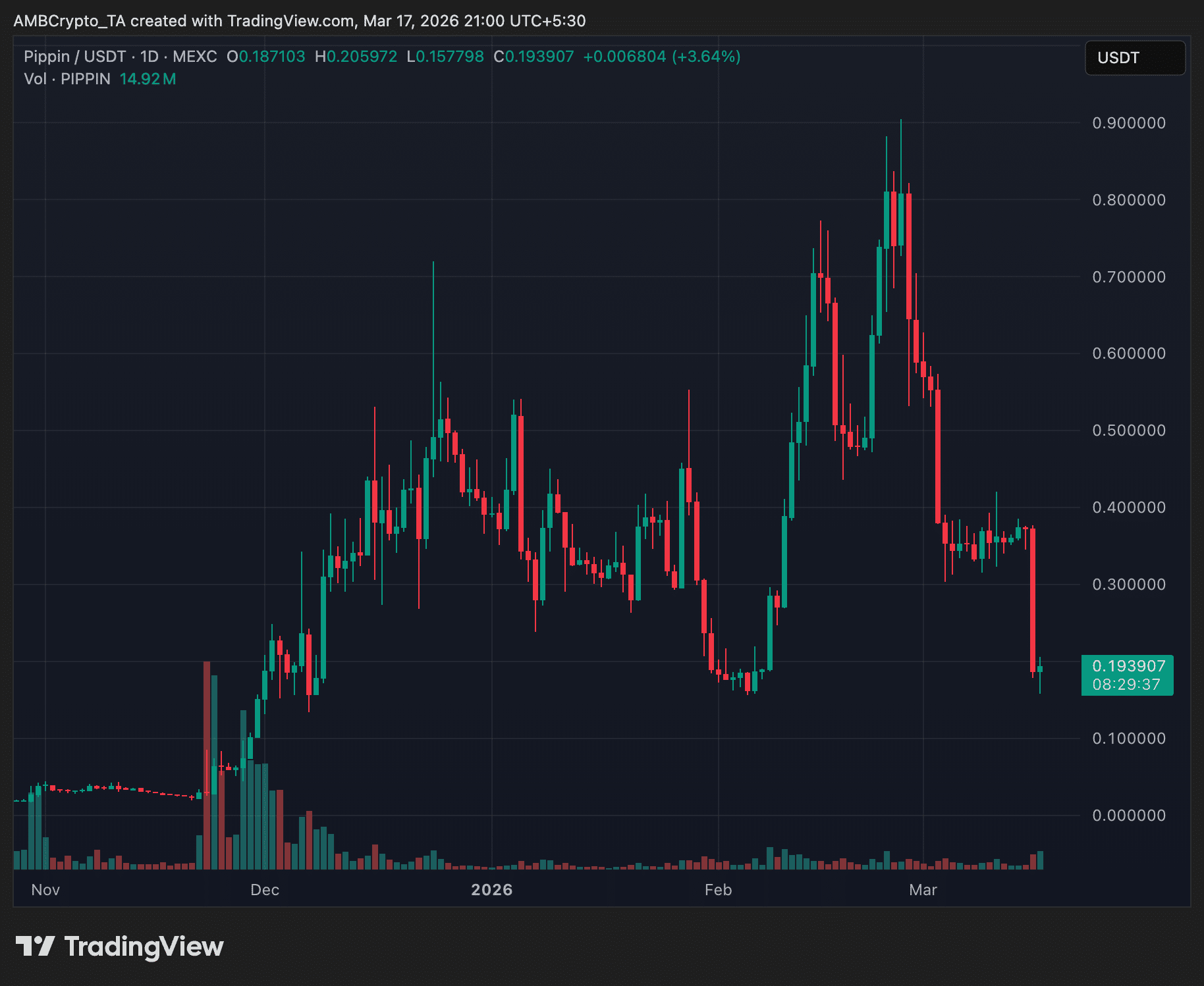 For now, PIPPIN’s price action appears to be driven by a combination of on-chain flows, spot selling pressure, and derivatives liquidations, with the latest move underscoring how quickly sentiment can shift in low-liquidity environments.
