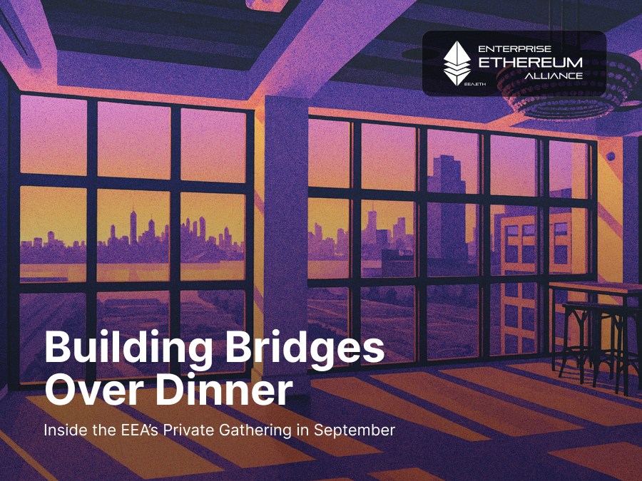 In September, the Enterprise Ethereum Alliance hosted an intimate private dinner in partnership with Coti (EEA L2 focused on Privacy) and The Table. The dinner brought together a curated mix of EEA members, Ethereum builders, and institutional participants from both DeFi and traditional finance.