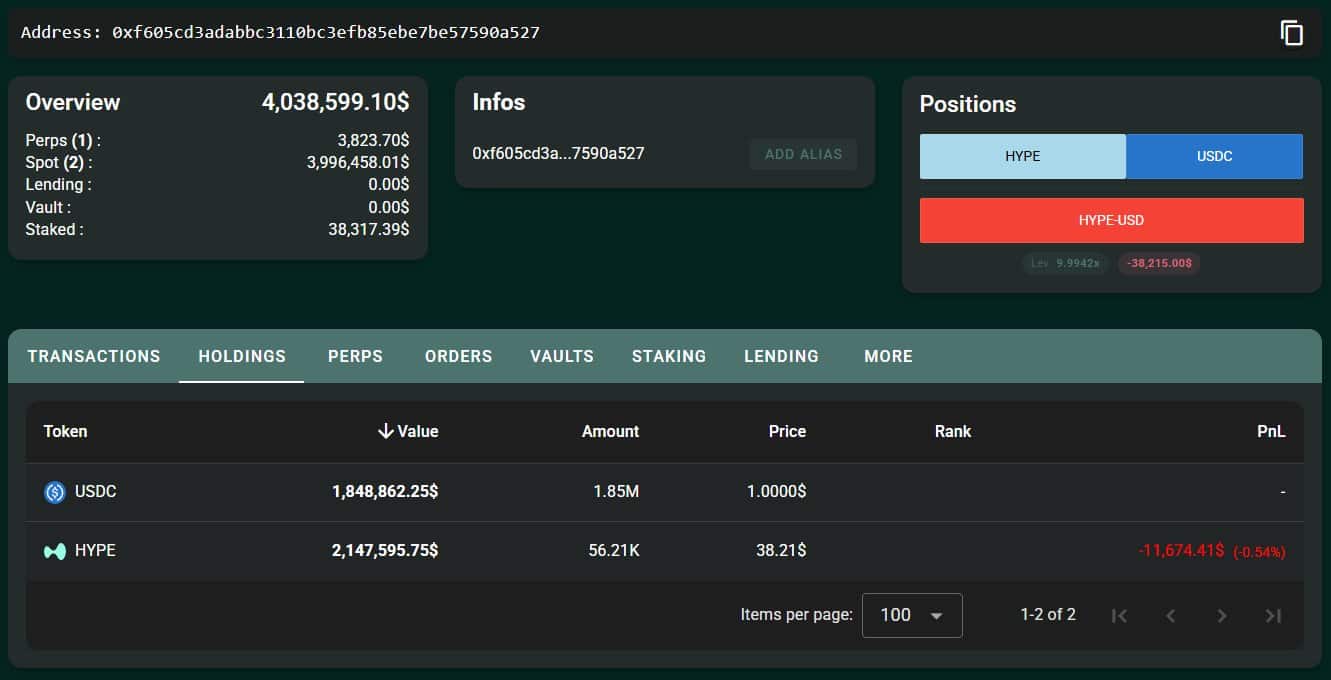 Recent on-chain activity shows a clear shift in how demand forms around Hyperliquid [HYPE]. A whale deposited $4 million USDC, then acquired about 56,208 HYPE worth roughly $2.1 million at $38.21.