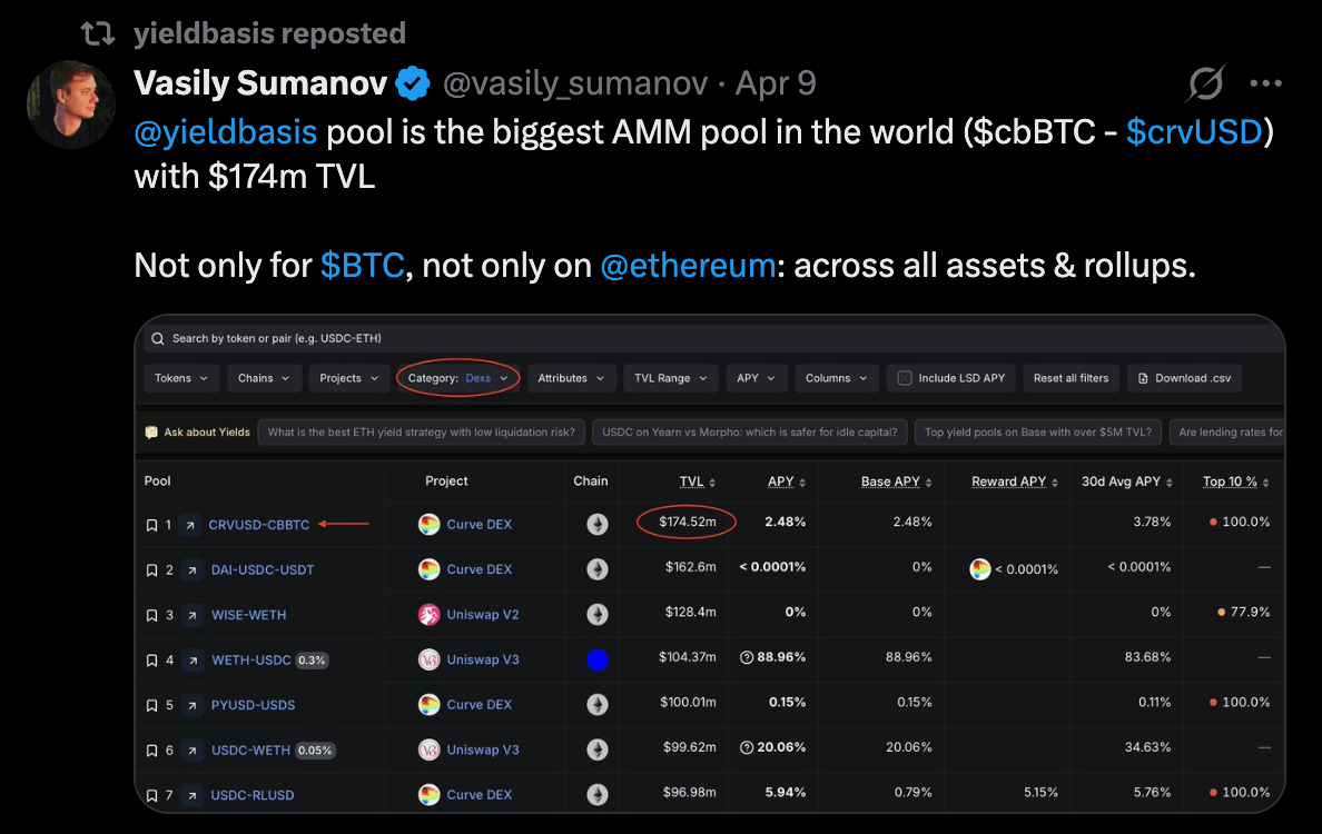 - Yield Basis processed $1.1 billion volume in Q1 2026, generating $12 million in fees from volatility.