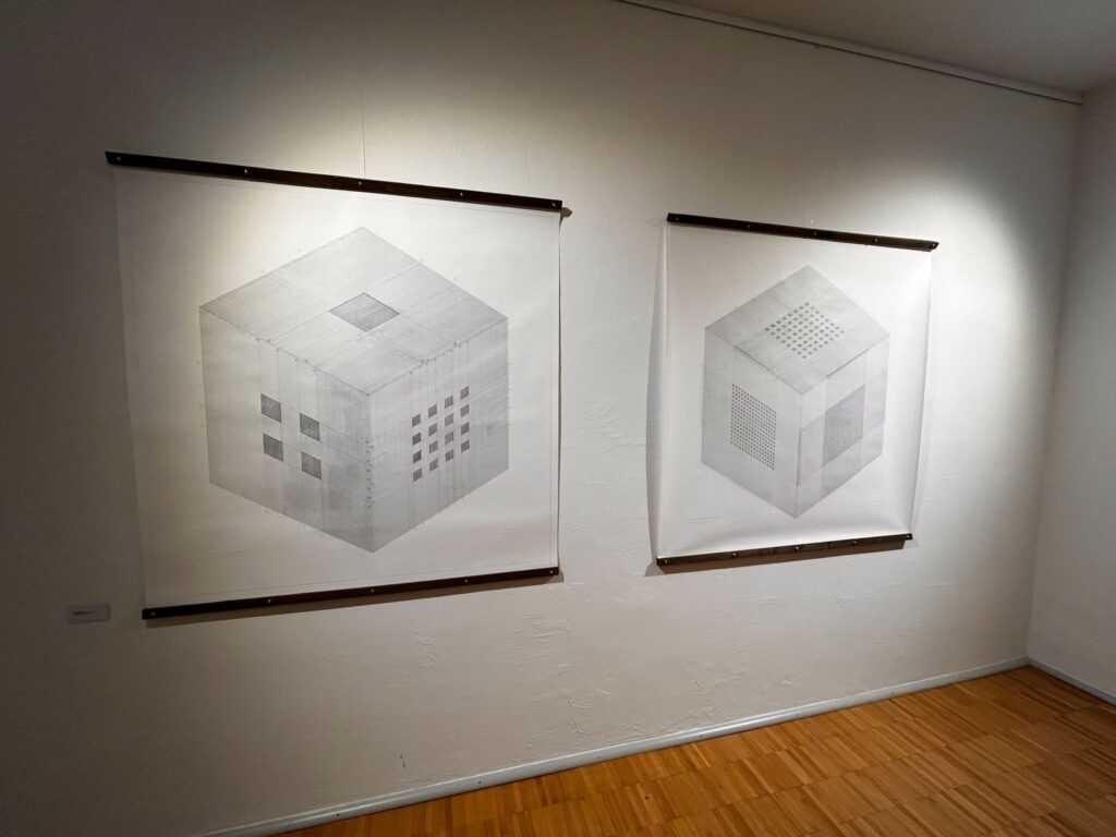 Anik Malcolm: Actually, both the Lugano drawings and the B26 painting (each 128×128 cm — about 4’2″) are on the smallest scale at which I could accurately represent the number! Each bead is 2mm (5/64″) — even smaller on the top face — so any smaller would have been unfeasible. I would also like to make a sculpture version of the same or similar size, hopefully within the next 12 months, as 55.2cm (under 2′) is still manageable in size. However, I met someone in Lugano who had spent years looking for a suitable idea for a monumental Bitcoin sculpture in Roatán, and felt that this worked perfectly. Even at a bead size of only 1cm (roughly ⅜”) with a 1cm gap in between for visual and kinetic effect, the cube alone quickly expands to 5.52m (approx. 18′), not counting the supporting structure and elevation from the ground. I feel that being able to be in the presence of all 21 million at such a grand and imposing scale would be an experience that would do bitcoin and all it stands for the appropriate justice.