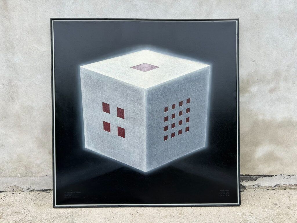 Anik Malcolm: I think my teenage daughter is a good representative of that demographic! She told me the other day that she would frequently come into the room where the painting has been drying “just to look at it for a while.” As I experienced while painting — I feel there is a deeply calming effect that the cube’s sheer symmetry and pattern exudes, floating and glowing in its abyssal setting, and combined with the provided soundtrack it becomes a deeply meditative and engrossing experience. And even on a basic math entry level — there are 21 subtracted squares visible on the painting! (Another beautiful coincidence — 1 square of 64², 4 squares of 32², and 16 squares of 16².) I feel, and hope, that both visitors of B26 and eventually the painting’s future owner will derive deep and sustained pleasure from this calm that was quietly encoded into that magical number, in the way both I and my whole family have during the journey of its creation — the calm methodical truth that is reflective of the bitcoin experience as a whole.
